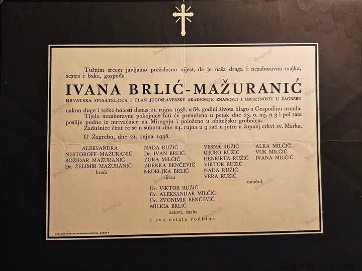 Osmrtnica Ivane Brlić Mažuranić, u kolekciji Ivana Brnčića